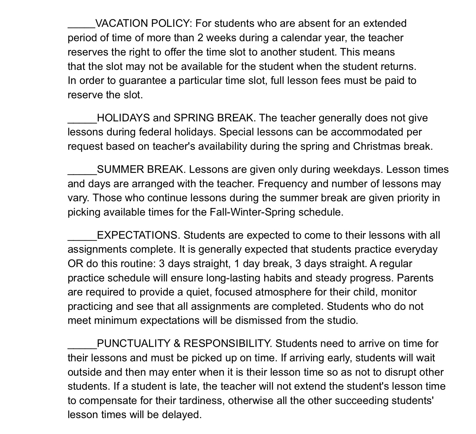 Studio Policies